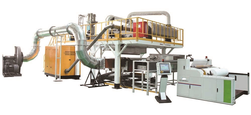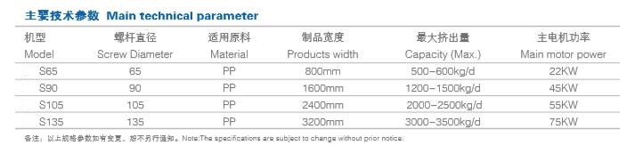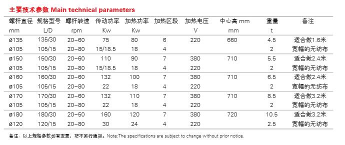 El extrusor de telas no tejidas se especializan en la producción de telas no tejidas de PP. Normalmente, utiliza dos extrusoras en serie, el tornillo L / D de la extrusora principal es de 30: 1, la extrusora auxiliar utilizada principalmente para mecanizar el material sobrante y la cortina de flot-Sam que se puede reciclar en la línea, la L / D es principalmente 15: 1. Varios tipos del modelo de extrusora para productos de diferentes anchuras de telas no tejidas.