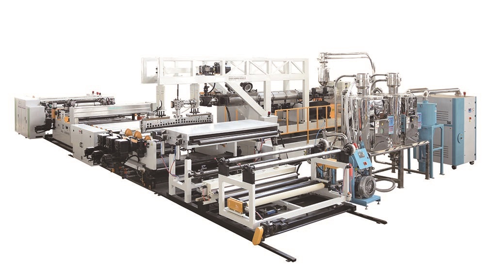 Esta línea de producción adopta el calandrado de extrusión de alta velocidad y la fundición. La calidad del producto es excelente y controlable. El grosor del producto es de 0.01-2.0 mm, y el ancho es 1000-3000 mm. Es adecuado para productos de película TPU con color transparente, glaseado, superficie de niebla y material compuesto multicapa.
