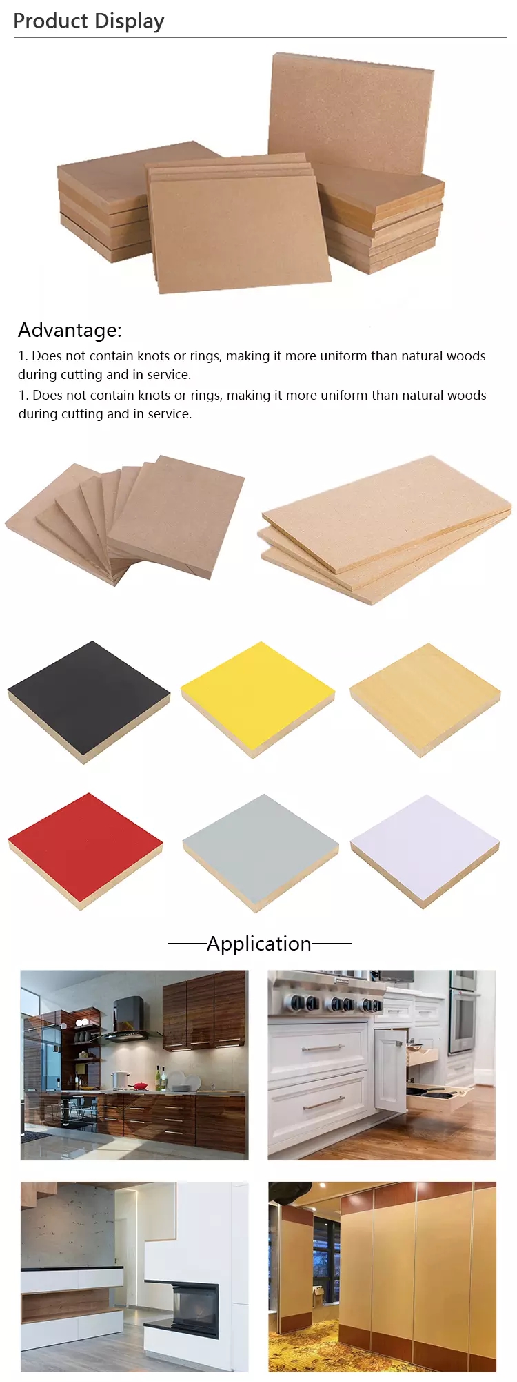 2. La densidad es de 820 kgs / cbm-850kgs / cbm, es más alta que el MDF grueso.